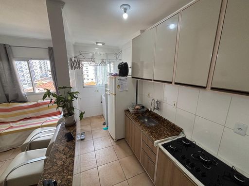 Lindo apartamento de 1 dormitório de 45 metros de área útil distribuídos em 1 dormitório, sala 2 ambientes , cozinha americana, lavanderia, banheiro. Condomínio com lazer completo na cobertura piscina com vista mar total , salão de jogos, sauna , banheiros, no térreo salão de festas , vagas para carro e moto, portaria 24horas, bicicletário. Excelente localização ao ladobde todo o comércio do bairro incluindo mercados, escolas, academias, padarias, restaurantes, postos de saúde e tudo isso a apenas 300m da praia !